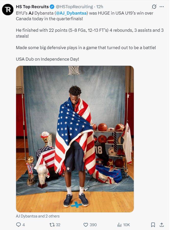 迪班萨在四分之一决赛中帮助美国击败加拿大,在激烈的对抗比赛中他做出了多次关键防守的表现。
