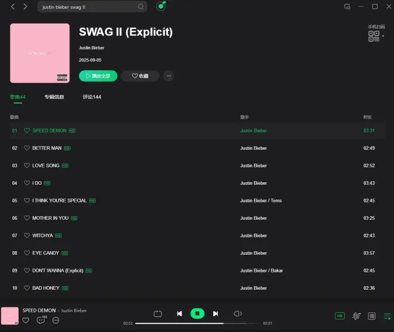 虎扑09月05日讯 Justin Bieber 新专辑续集大碟『SWAG II』全平台正式发行。