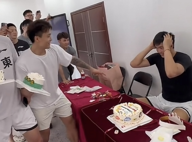 该说不说,气氛组还得是睿哥,砸蛋糕轻车熟路的,老传统了!广东男篮的队内气氛真的好呀!